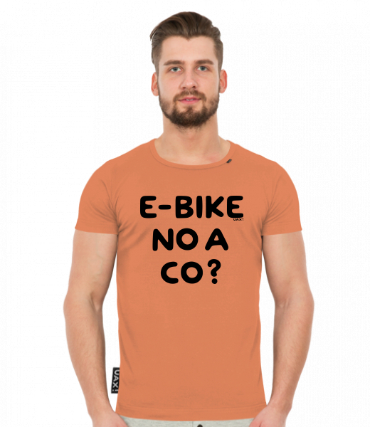 We make sustainable UAX clothing! - hand sewn in the Czech Republic uaxMen uaxAll productsT-shirtsT-SHIRTS SLIM FITdesign 1292 - E-BIKE NO A CO?MANDARIAN ORANGE