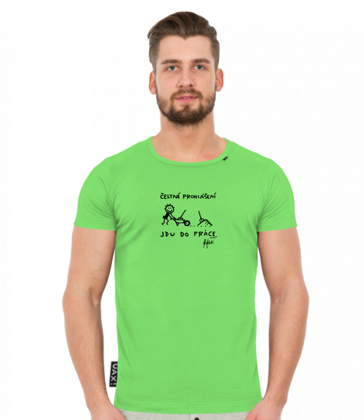 Men's t-shirts SLIM FIT UAX! for man with design 1304 ČESTNÉ PROHLÁŠENÍ JDU DO PRÁCE in color APPLE