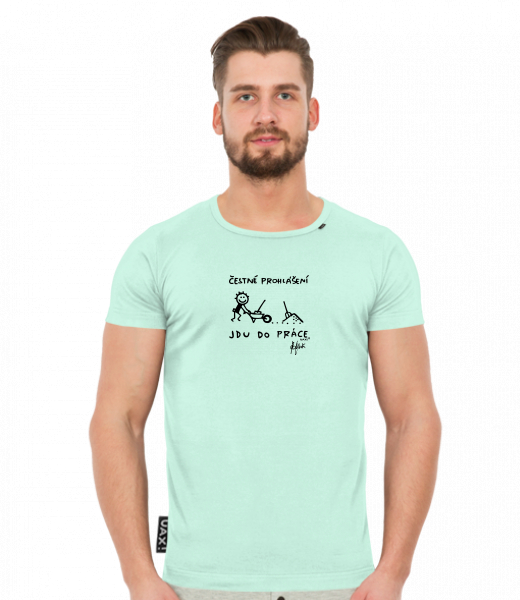 Men's t-shirts SLIM FIT UAX! for man with design 1304 ČESTNÉ PROHLÁŠENÍ JDU DO PRÁCE in color MINT