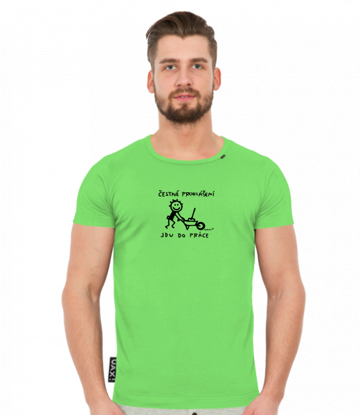Men's t-shirts SLIM FIT UAX! for man with design 1305 ČESTNÉ PROHLÁŠENÍ JDU DO PRÁCE 2 in color APPLE