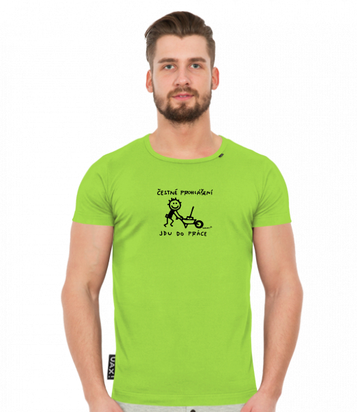Men's t-shirts SLIM FIT UAX! for man with design 1305 ČESTNÉ PROHLÁŠENÍ JDU DO PRÁCE 2 in color PARROT GREEN
