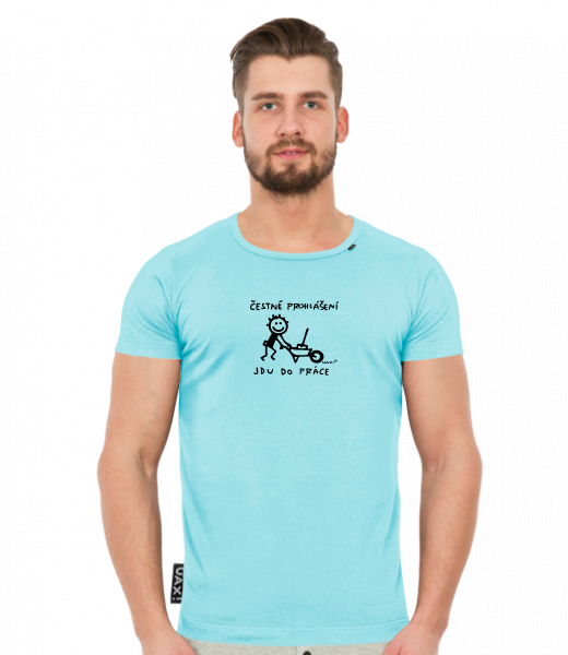 Men's t-shirts SLIM FIT UAX! for man with design 1305 ČESTNÉ PROHLÁŠENÍ JDU DO PRÁCE 2 in color PASTEL BLUE