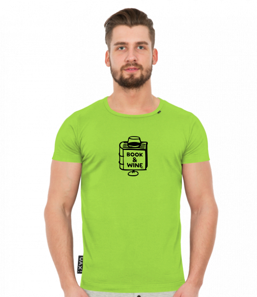 We make sustainable UAX clothing! - hand sewn in the Czech Republic uaxMen uaxAll productsT-shirtsT-SHIRTS SLIM FITdesign 1322 - BOOK AND WINEPARROT GREEN