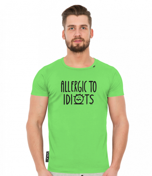 Men's t-shirts SLIM FIT UAX! for man with design 1354 ALLERGIC TO IDIOTS in color APPLE