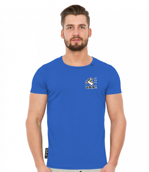 We make sustainable UAX clothing! - hand sewn in the Czech Republic uaxMen uaxAll productsT-shirtsT-SHIRTS SLIM FITdesign 412 - LOGO UAX! SMALLROYAL BLUE