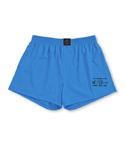 We make sustainable UAX clothing! - hand sewn in the Czech Republic uaxMen uaxAll productsTrunksBOXERSdesign 1211 - MY SIMPLE LIFE WORK BEER BEDCAPRI BLUE