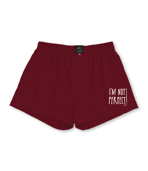 We make sustainable UAX clothing! - hand sewn in the Czech Republic uaxMen uaxAll productsTrunksBOXERSdesign 1230 - IM NOT PERFECTDARK RED