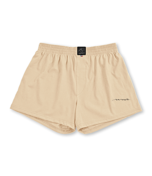 Trenky s potiskem UAX! for man with design 1234 NAMASTE in color CARAMEL
