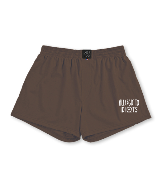 We make sustainable UAX clothing! - hand sewn in the Czech Republic uaxMen uaxAll productsTrunksBOXERSdesign 1354 - ALLERGIC TO IDIOTSCHESTNUT