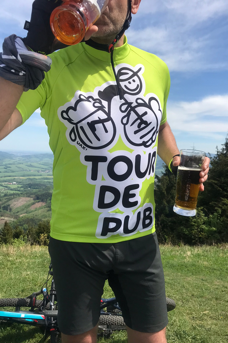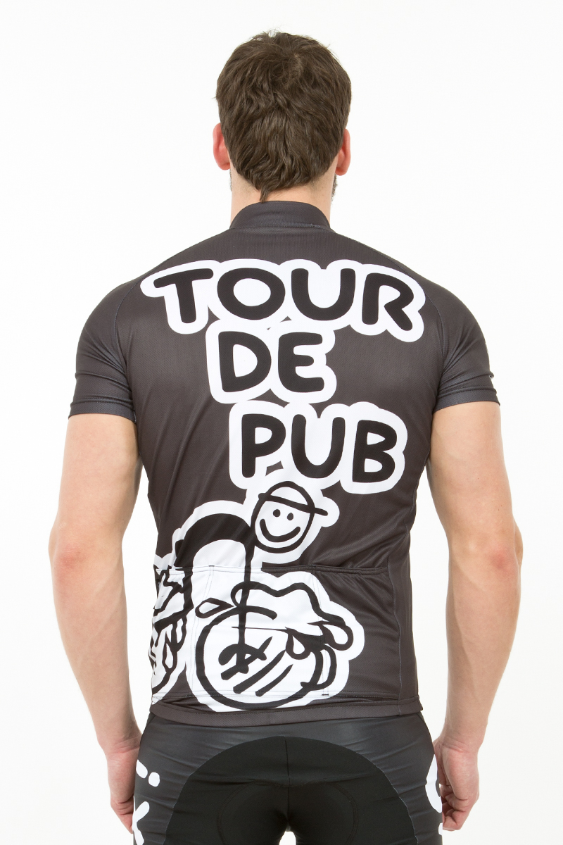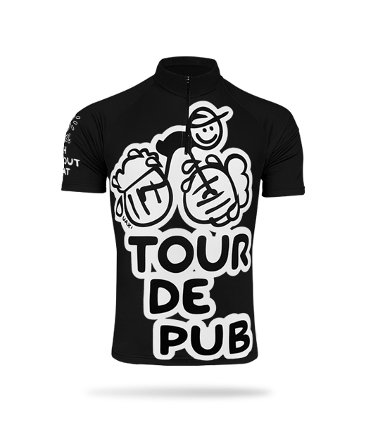 Original men's cycling jersey in several colors with print TOUR DE PUB. Made of special MICRO BORGINI microfibers that ensure maximum perspiration removal from the skin. It is lightweight, comfortable to wear. The cyclodress includes a short 16cm zip and three pockets on the back. The sleeves are loose, with rubber at the bottom hem.