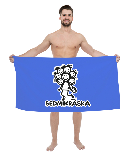The original towel imprinted with UAX! Cycling for man with design 1046 SEDMIKRÁSKA in color CAPRI BLUE
