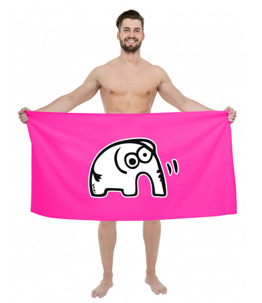 We make sustainable UAX clothing! - hand sewn in the Czech Republic uaxMen uaxCyclingTowelsPRINTED BIG TOWELSdesign 1054 - MR. MEMORYFLUO PINK