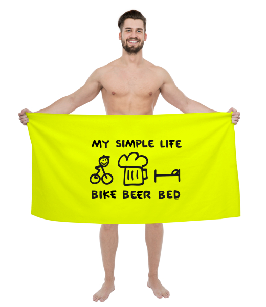 The original towel imprinted with UAX! Cycling for man with design 1056 BIKE BEER BED in color GREEN LIMET