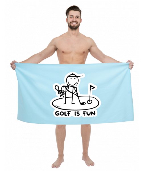 We make sustainable UAX clothing! - hand sewn in the Czech Republic uaxMen uaxCyclingTowelsPRINTED BIG TOWELSdesign 1057 - GOLF IS FUNPASTEL BLUE
