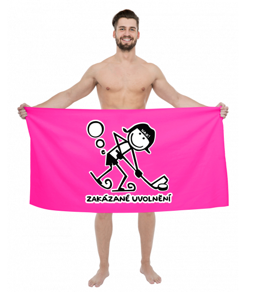 The original towel imprinted with UAX! Cycling for man with design 1059 ZAKÁZANÉ UVOLNĚNÍ in color FLUO PINK