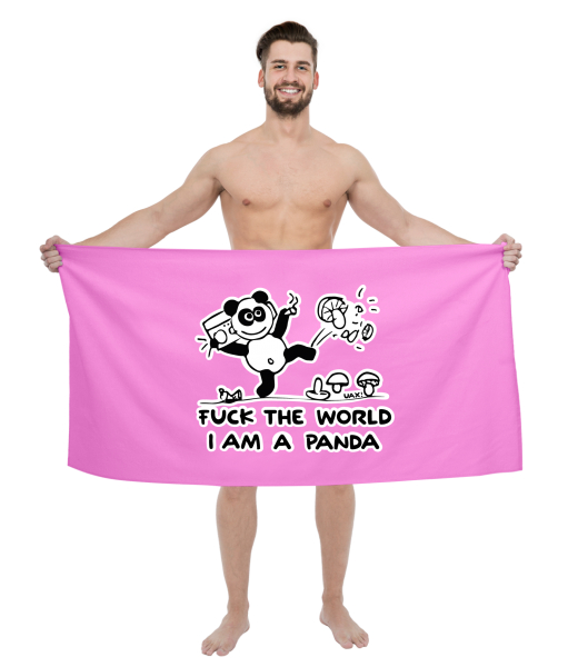 We make sustainable UAX clothing! - hand sewn in the Czech Republic uaxMen uaxCyclingTowelsPRINTED BIG TOWELSdesign 1060 - I AM A PANDAINDIAN LILA