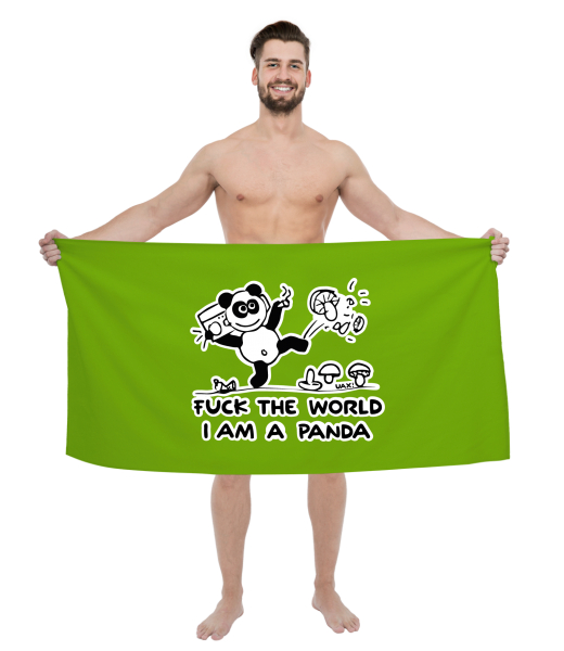 We make sustainable UAX clothing! - hand sewn in the Czech Republic uaxMen uaxCyclingTowelsPRINTED BIG TOWELSdesign 1060 - I AM A PANDAPARROT GREEN