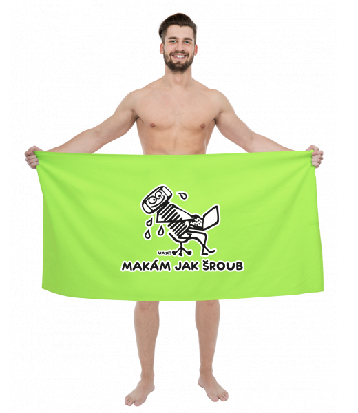 We make sustainable UAX clothing! - hand sewn in the Czech Republic uaxMen uaxCyclingTowelsPRINTED BIG TOWELSdesign 1061 - MAKÁM JAK ŠROUBFLUO GREEN