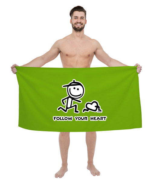 The original towel imprinted with UAX! Cycling for man with design 1063 FOLOW YOUR HEART in color PARROT GREEN