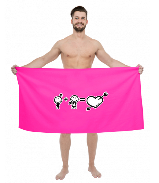 The original towel imprinted with UAX! Cycling for man with design 1065 MATH OF LOVE in color FLUO PINK