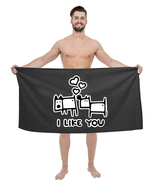 We make sustainable UAX clothing! - hand sewn in the Czech Republic uaxMen uaxCyclingTowelsPRINTED BIG TOWELSdesign 1066 - I LIKE YOUBLACK