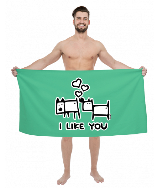 The original towel imprinted with UAX! Cycling for man with design 1066 I LIKE YOU in color EUCALYPTO GREEN