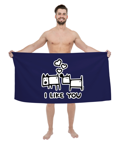 We make sustainable UAX clothing! - hand sewn in the Czech Republic uaxMen uaxCyclingTowelsPRINTED BIG TOWELSdesign 1066 - I LIKE YOUMIDNIGHT BLUE