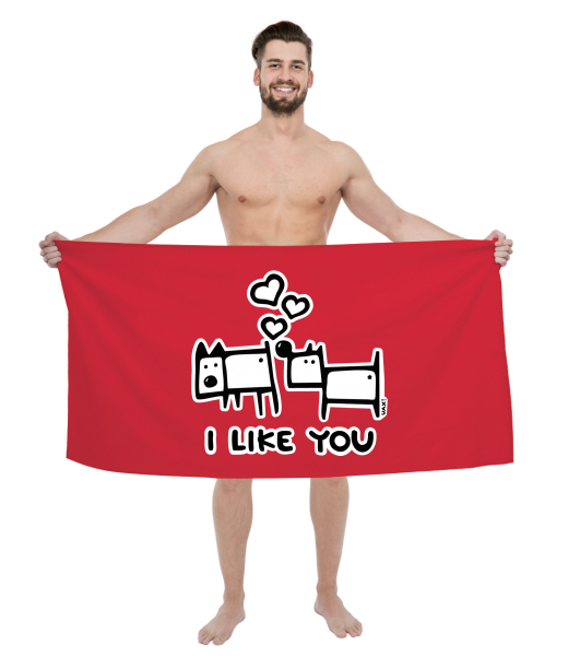 The original towel imprinted with UAX! Cycling for man with design 1066 I LIKE YOU in color RED