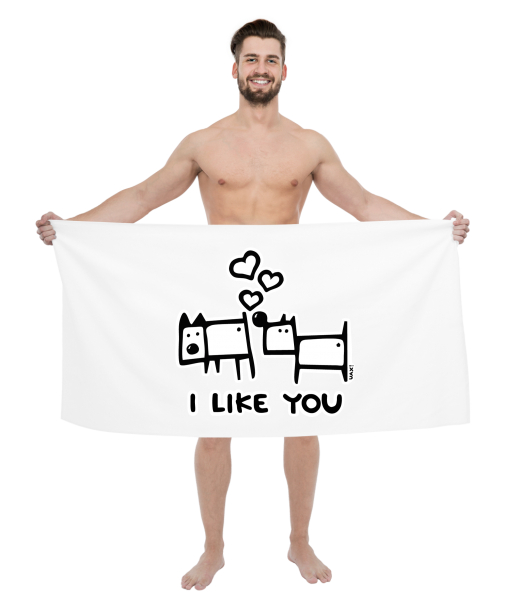 We make sustainable UAX clothing! - hand sewn in the Czech Republic uaxMen uaxCyclingTowelsPRINTED BIG TOWELSdesign 1066 - I LIKE YOUWHITE