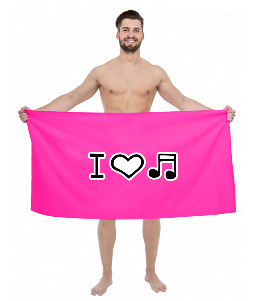 We make sustainable UAX clothing! - hand sewn in the Czech Republic uaxMen uaxCyclingTowelsPRINTED BIG TOWELSdesign 1067 - I LOVE MUSICFLUO PINK