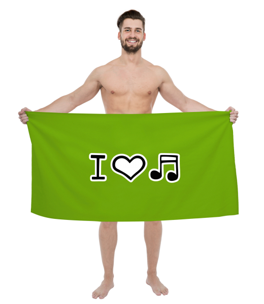 The original towel imprinted with UAX! Cycling for man with design 1067 I LOVE MUSIC in color PARROT GREEN