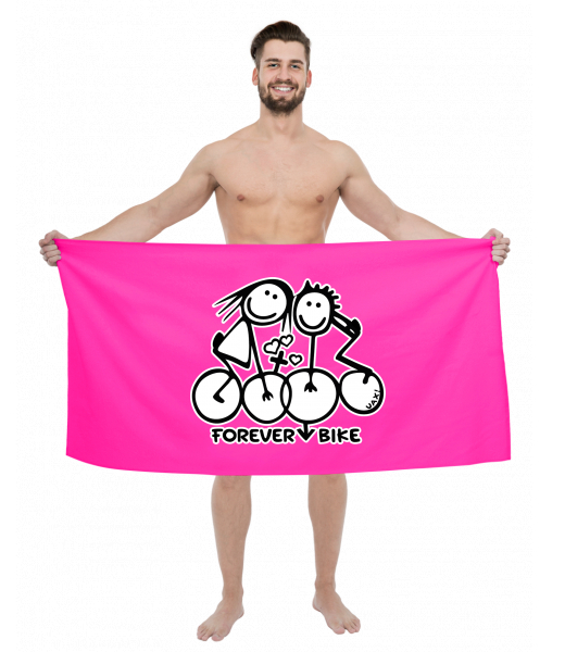 The original towel imprinted with UAX! Cycling for man with design 1068 FOREVER BIKE in color FLUO PINK