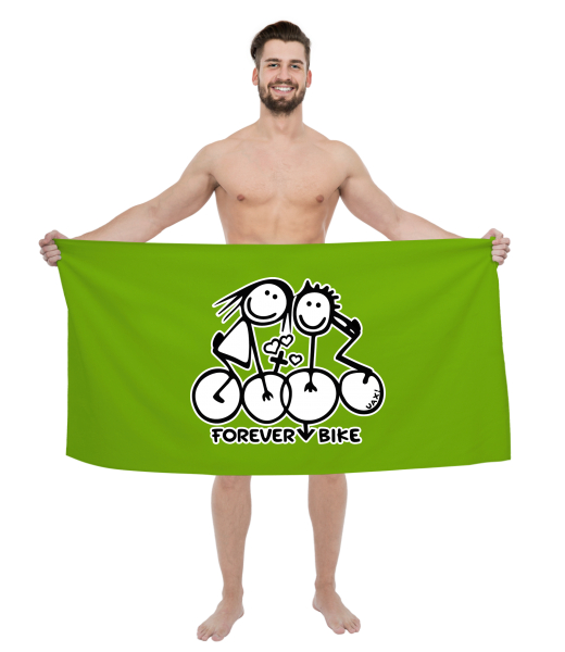 The original towel imprinted with UAX! Cycling for man with design 1068 FOREVER BIKE in color PARROT GREEN