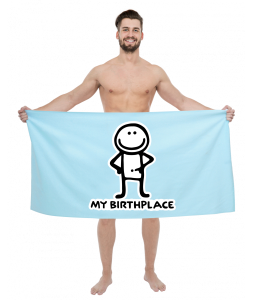 We make sustainable UAX clothing! - hand sewn in the Czech Republic uaxMen uaxCyclingTowelsPRINTED BIG TOWELSdesign 1069 - MY BIRTHPLACEPASTEL BLUE
