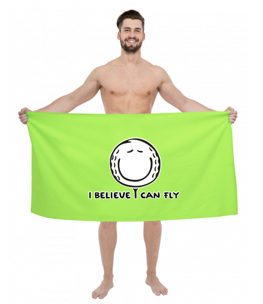 We make sustainable UAX clothing! - hand sewn in the Czech Republic uaxMen uaxCyclingTowelsPRINTED BIG TOWELSdesign 1070 - I BELIEVE I CAN FLYFLUO GREEN