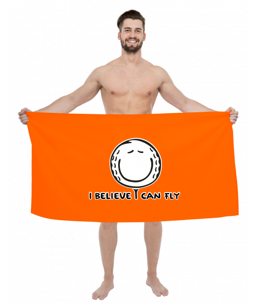 We make sustainable UAX clothing! - hand sewn in the Czech Republic uaxMen uaxCyclingTowelsPRINTED BIG TOWELSdesign 1070 - I BELIEVE I CAN FLYSIGNAL ORANGE