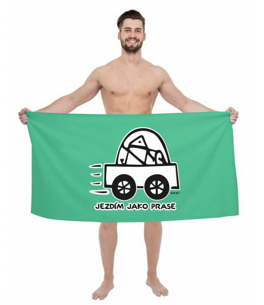 We make sustainable UAX clothing! - hand sewn in the Czech Republic uaxMen uaxCyclingTowelsPRINTED BIG TOWELSdesign 1072 - JEZDÍM JAKO PRASEEUCALYPTO GREEN