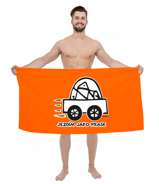 We make sustainable UAX clothing! - hand sewn in the Czech Republic uaxMen uaxCyclingTowelsPRINTED BIG TOWELSdesign 1072 - JEZDÍM JAKO PRASESIGNAL ORANGE