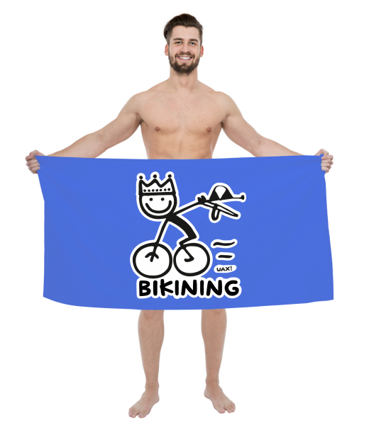 The original towel imprinted with UAX! Cycling for man with design 1080 BIKINING in color CAPRI BLUE