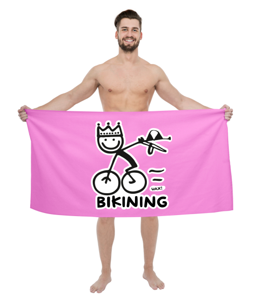 The original towel imprinted with UAX! Cycling for man with design 1080 BIKINING in color INDIAN LILA