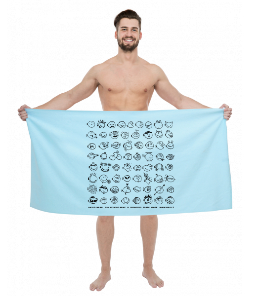 We make sustainable UAX clothing! - hand sewn in the Czech Republic uaxMen uaxCyclingTowelsPRINTED BIG TOWELSdesign 1085 - FISH WITHOUT MEAT 2PASTEL BLUE