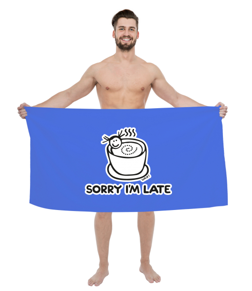 We make sustainable UAX clothing! - hand sewn in the Czech Republic uaxMen uaxCyclingTowelsPRINTED BIG TOWELSdesign 1087 - SORRY IM LATECAPRI BLUE