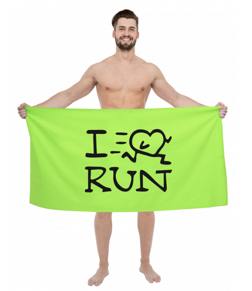 The original towel imprinted with UAX! Cycling for man with design 1088 I LOVE RUN in color FLUO GREEN