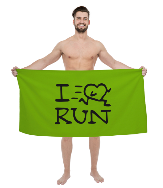 The original towel imprinted with UAX! Cycling for man with design 1088 I LOVE RUN in color PARROT GREEN