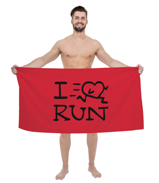 We make sustainable UAX clothing! - hand sewn in the Czech Republic uaxMen uaxCyclingTowelsPRINTED BIG TOWELSdesign 1088 - I LOVE RUNRED