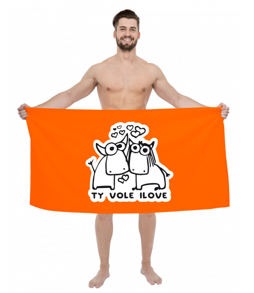 We make sustainable UAX clothing! - hand sewn in the Czech Republic uaxMen uaxCyclingTowelsPRINTED BIG TOWELSdesign 1089 - TY VOLE I LOVESIGNAL ORANGE