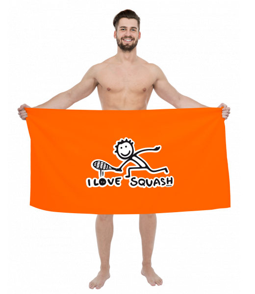 We make sustainable UAX clothing! - hand sewn in the Czech Republic uaxMen uaxCyclingTowelsPRINTED BIG TOWELSdesign 1091 - I LOVE SQUASHSIGNAL ORANGE