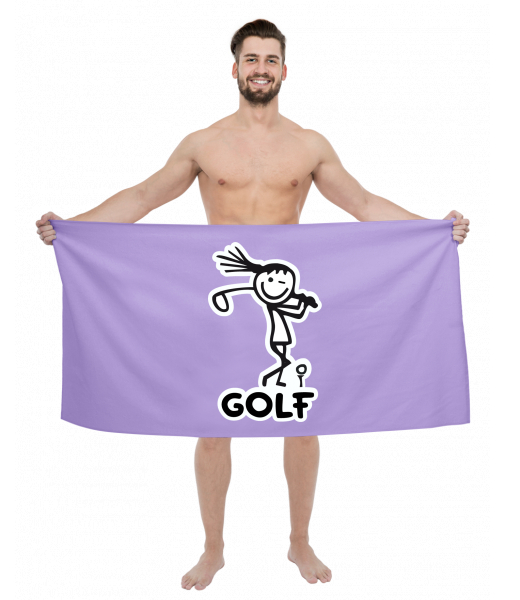The original towel imprinted with UAX! Cycling for man with design 1092 GOLF in color LAVENDER