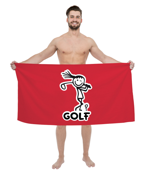The original towel imprinted with UAX! Cycling for man with design 1092 GOLF in color RED