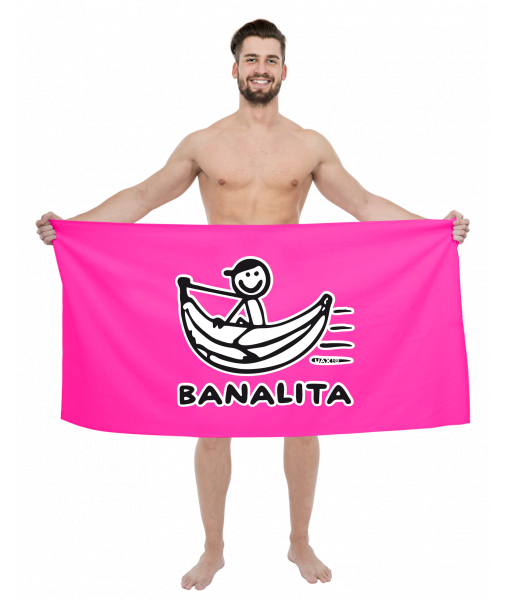 The original towel imprinted with UAX! Cycling for man with design 1095 BANALITA in color FLUO PINK